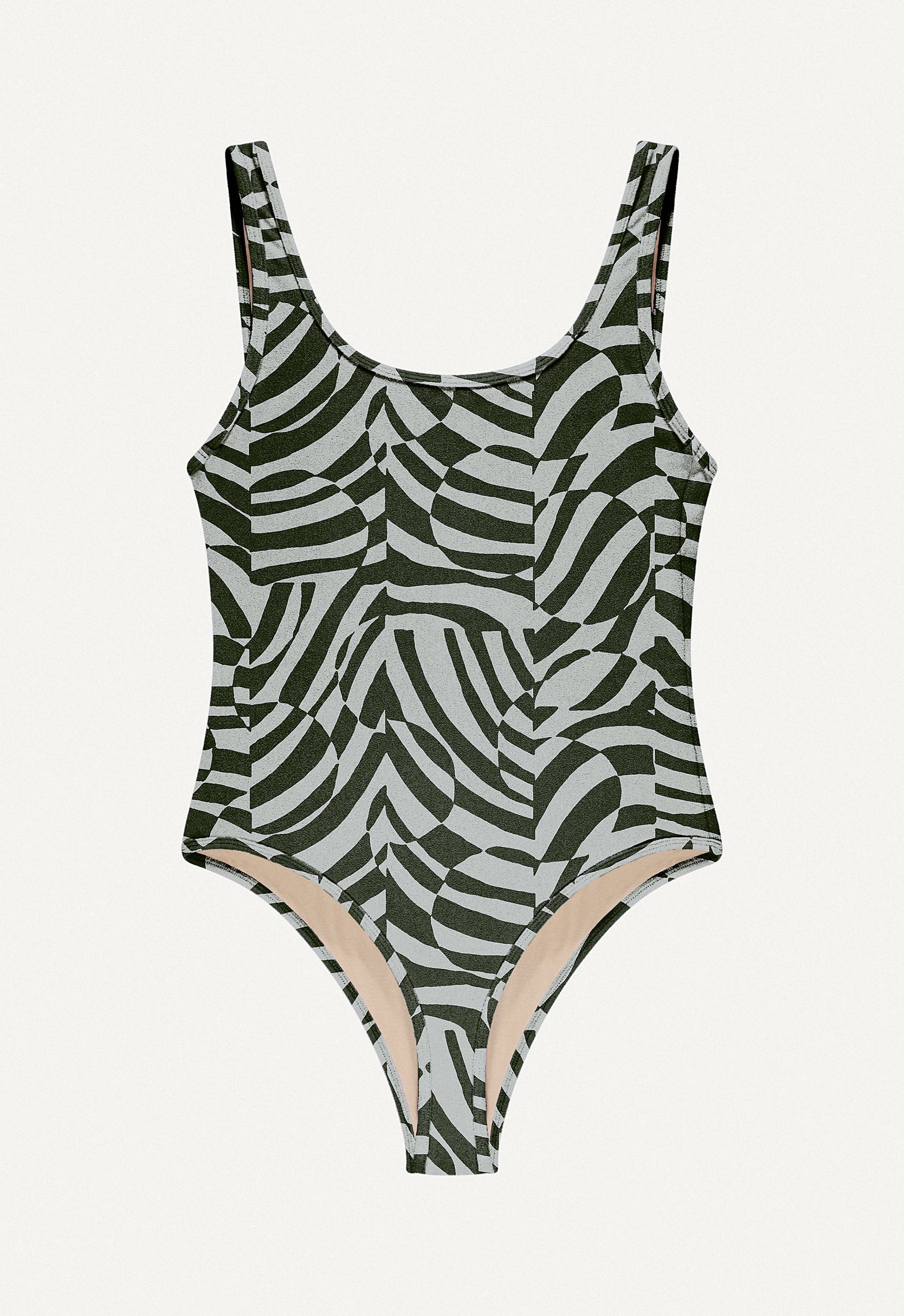Nachhaltiger Badeanzug mit Zebramuster.